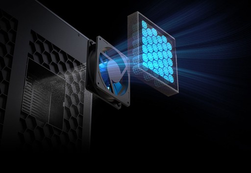 Głowica drukująca K1 posiada mocny wentylator promieniowy, który zapewnia dwustronne chłodzenie komponentów, a tym samym chłodzi świeżo wydrukowane warstwy bezpośrednio z dwóch stron. Wentylator obudowy o mocy 18 W dodatkowo zwiększa efekt chłodzenia.