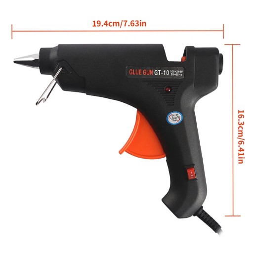 - Pistolet do kleju na gorąco: duży, do ręki, mocny 100W. Na wkłady 11 mm, zgodnie z oferowanym klejem w zestawie.
