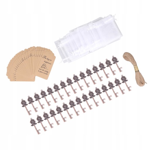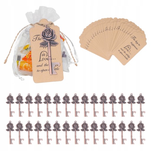 30 SZTUK Różany kluczowy otwieracz do butelek z kartami identyfikacyjnymi Stop cynku DIY Zawieszka w stylu vintage Dekoracja na przyjęcie ślubne