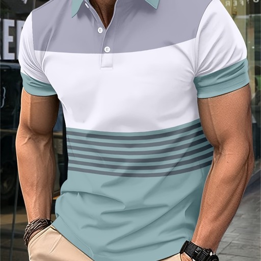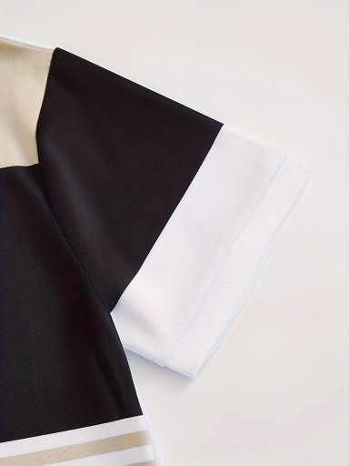 Мужская рубашка для гольфа с короткими рукавами и лацканами в стиле цветных блоков