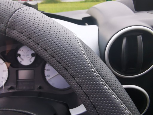 Pokrowiec na kierownicę wykonany z wysokiej jakości ekoskóry perforowanej.