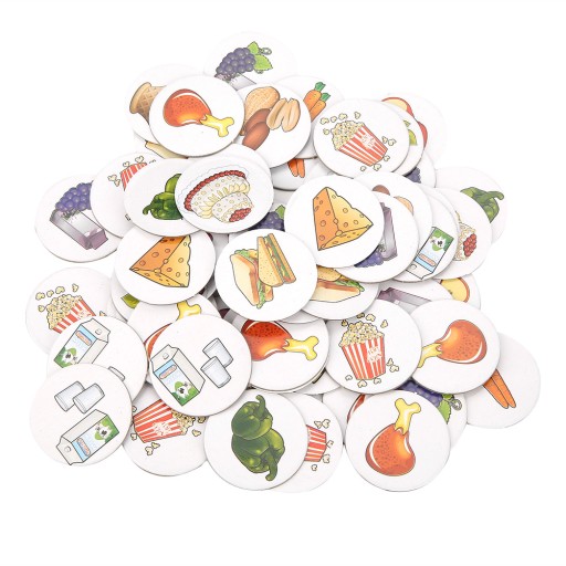 - Zabawny zestaw do gier. Obróć talerz, aby rozdzielić żetony przekąsek i szukaj zapałek na talerzu z przekąskami.