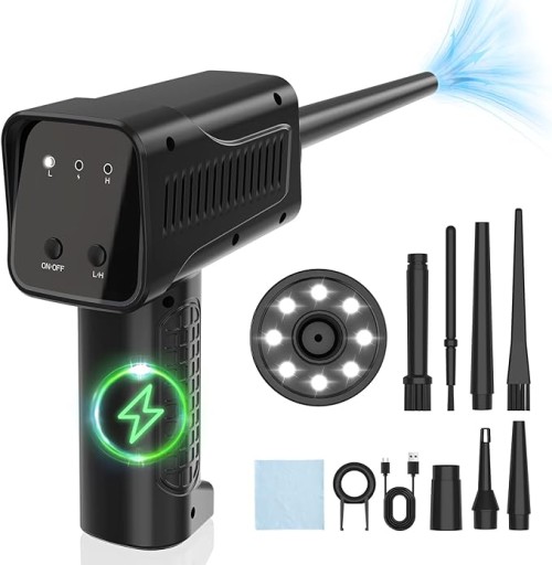 - 【Lampy LED, przyjazne dla środowiska i energooszczędne】Alternatywa dla sprężonego powietrza w puszkach, spray na sprężone powietrze może być ponownie naładowany i używany wielokrotnie. Diody LED umożliwiają łatwe czyszczenie ciemnych narożników, co zapewnia dużą wygodę podczas czyszczenia. Podczas czyszczenia nie tworzy się płyn ani lód. Chroni elektronikę przed cieczami, dzięki czemu Air Duster jest przyjazny dla środowiska i energooszczędny.