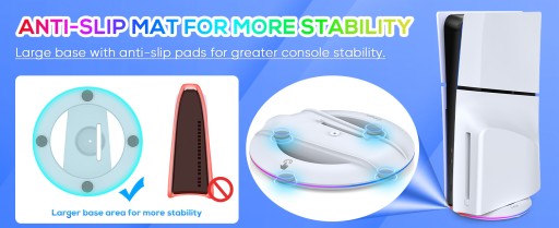 【Dość stabilny】 Antypoślizgowa podkładka pod stopy i trwała konstrukcja z materiału ABS zapewniają stabilność i bezpieczeństwo konsoli, dzięki czemu akcesoria PS5 Slim niełatwo przewrócić.