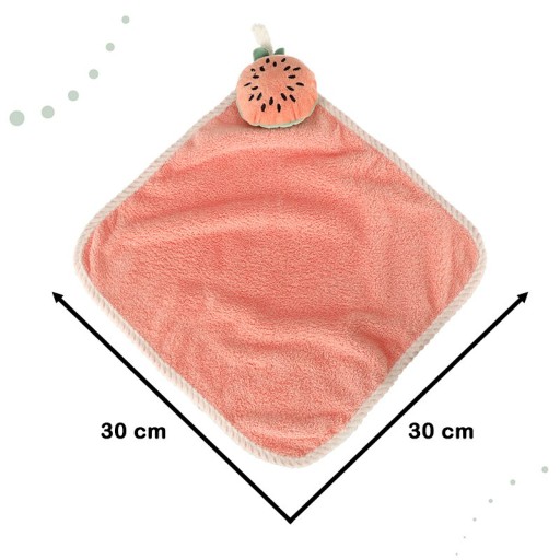 Ręcznik ma rozmiar 30 cm x 30 cm, dzięki czemu jest idealny do dziecięcych dłoni. Maluch będzie miał swój indywidualny ręcznik, do którego dosięgnie bez najmniejszego problemu.