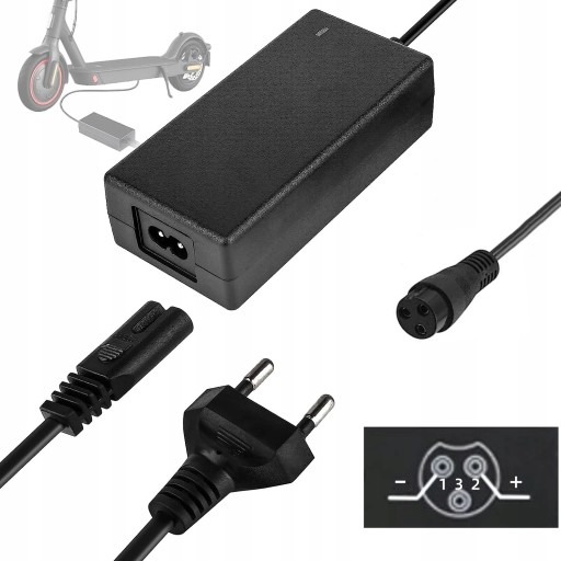 ⚡ Konstrukcja do szybkiego ładowania z maksymalną mocą: 42 V/2A. Szeroki zakres napięcia wejściowego: 100-240 V, Nadaje się do stosowania ze skuterami elektrycznymi.