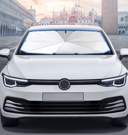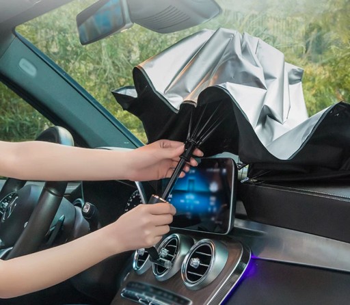 Osłona przeciwsłoneczna do samochodu w formie parasola. Doskonale chroni samochód przed nadmiernym nagrzewaniem.