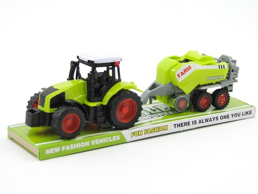 Traktor o którym marzy każdy mały chłopiec, pasjonujący się maszynami rolniczymi. Rolniczy zestaw składa się z traktora i z doczepianej maszyny kostkującej siano trawę
