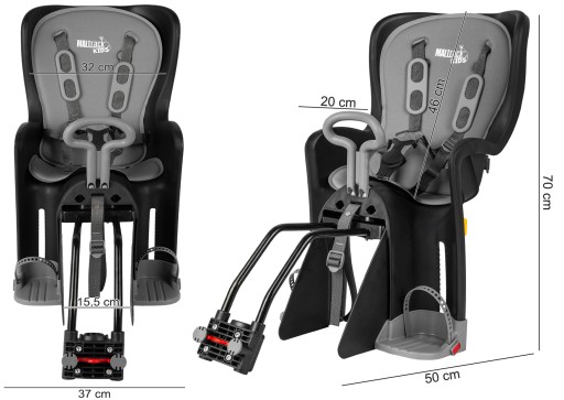 - Montowany jest do tylnej okrągłej ramy podsiodełkowej o średnicy 26-34mm (standardowa), co zapewnia bezpieczeństwo i większą wygodę dla Twojego dziecka