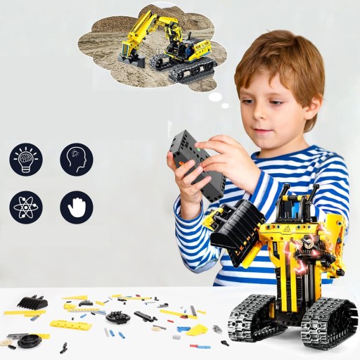 - - Techniczna zabawka konstrukcyjna samochodu RC pozwala na zbudowanie 3 modeli, koparki technicznej, robota i samochodu budowlanego. Pozwala dzieciom odkryć więcej wyobraźni i kreatywności oraz ćwiczyć umiejętności klasyfikacji i składania.