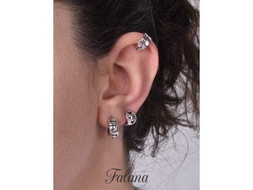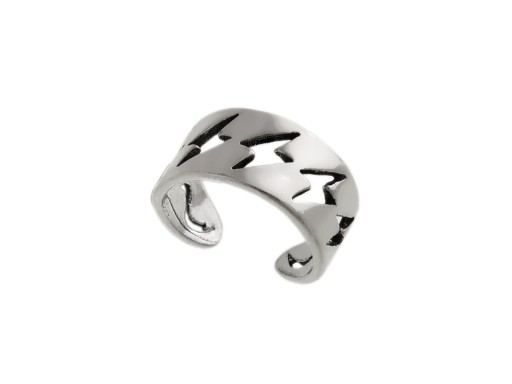 Nausznica wykonany ze srebra próby 925 z wyciętym wzorem błyskawicy. Nausznica zakładana jest na górną część małżowiny i zaciskamy ją by pewnie trzymała się na uchu.