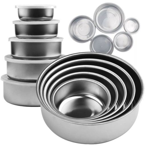 Zestaw pięciu misek wykonanych z wysokiej jakości stali nierdzewnej wraz z kompletem pokrywek. Każda z misek wyposażona jest w pokrywkę, która pozwoli na zachowanie świeżości potraw przez długi czas.