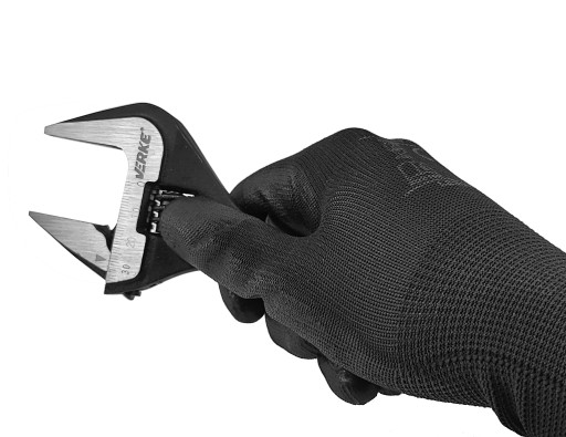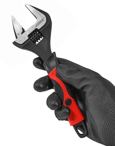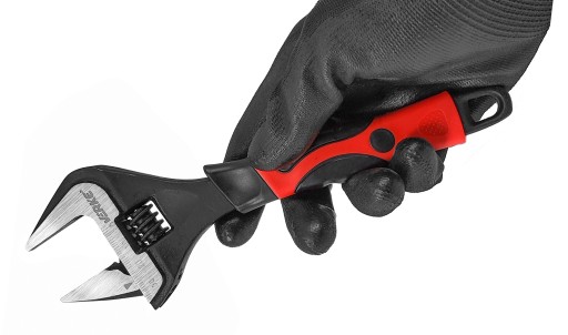 Klucz nastawny z poszerzonym zakresem rozstawu szczęk (w stosunku do standardowych w tym rozmiarze). Wykonany ze stali chromowo-wanadowej (CR-V) zastosowany chrom gwarantuje odporność stali na korozję, utlenianie, ścieranie i dużą wytrzymałość w wysokiej temperaturze, zaś dodatek wanadu również wpływa na odporność na działanie wysokich temperatur oraz nieuleganie deformacjom. Miarka wypalona laserowo gwarantuje czytelność bez obaw o zatarcie się skali. Rękojeść pokryta tworzywem odpornym na działanie oleju i smarów.