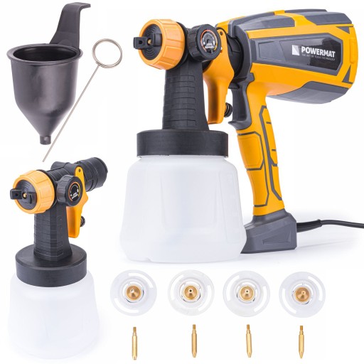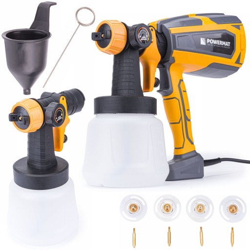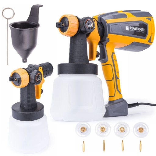 Pistolet HVLP do malowania marki POWERMAT został wyposażony w wytrzymały i wydajny silnik o mocy 600 W, jest niezastąpionym narzędziem do użytku domowego.