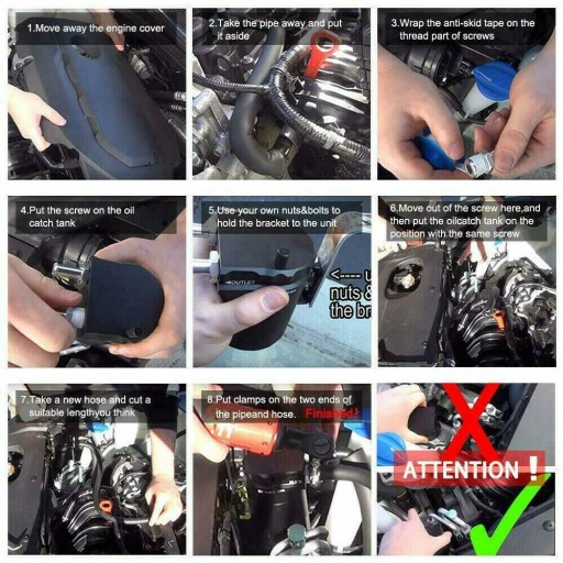 - Ten pojemnik na olej wychwytuje olej i wilgoć z przedmuchiwanych gazów, które powodują gromadzenie się węgla i szlamu w układzie dolotowym i silniku. Pojemnik zapobiega przedostawaniu się brudu i oleju z układu dolotowego do silnika. Utrzymuje silnik w czystości. Zwiększa moc i wydłuża żywotność silnika.