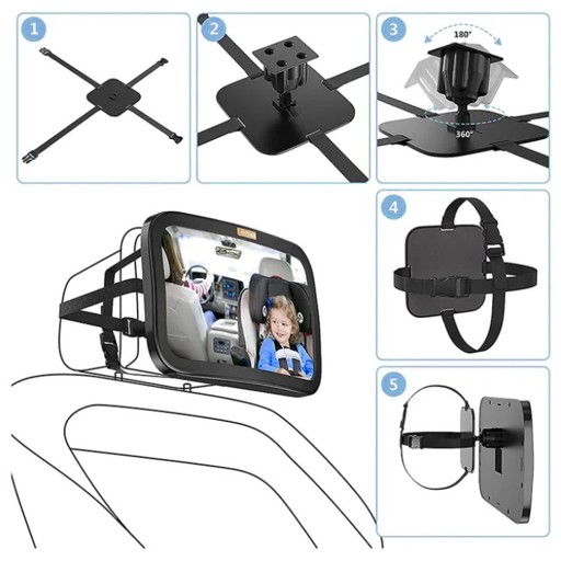 - Łatwy montaż: Lusterko można łatwo zamontować na zagłówku przedniego fotela za pomocą pasków mocujących.