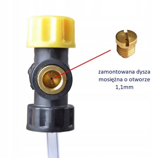 Pianownica posiada regulacje kąta strumienia wody z pianą oraz ilość podawania chemii. Montowana jest do pistoletu dzięki temu omijamy obieg wewnętrzny w myjce a agresywna chemia nie ma kontaktu z podzespołami myjki, niwelując zagrożenie uszkodzenia np głowicy pompy.