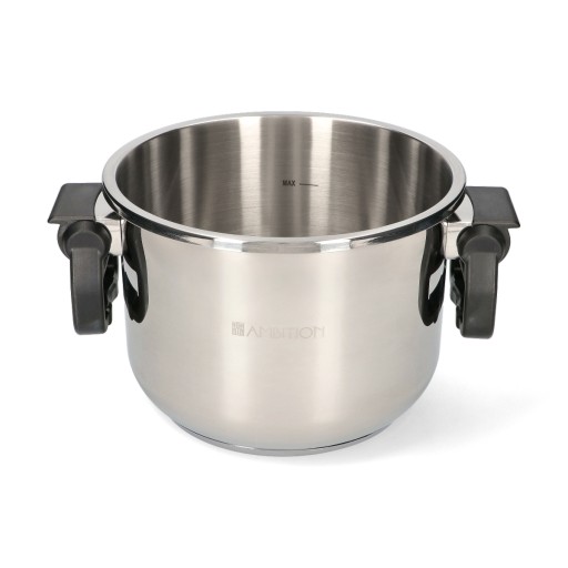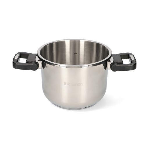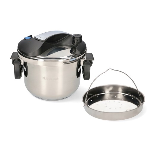 Szybkowar ze stali nierdzewnej ze składanymi uchwytami.