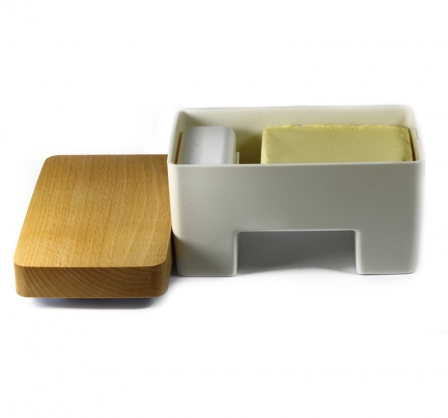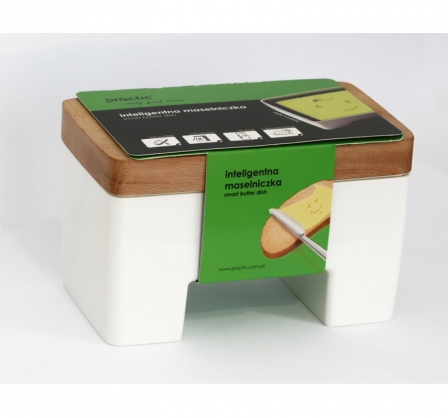 Świeże masło na dłużej? Odkryj inteligentną maselniczkę , która Ci to zagwarantuje! Maselniczka powstała z wytrzymałego i bezpiecznego tworzywa, a jej wierzch wyposażony został w elegancką pokrywę z bukowego drewna. Dzięki swojej wyjątkowej budowie możemy przechowywać masło zdecydowanie dłużej, a co najlepsze, nie w lodówce! Masło zanurzone jest w wodzie co sprawia, że nie ma ono styczności z powietrzem. W związku z tym nie "obcuje" także z bakteriami i innymi drobnoustrojami, które mają duży wpływ na szybsze psucie się tego produktu spożywczego.