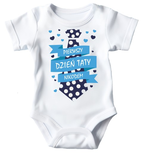 Body niemowlęce dla chłopca z okazji Dnia Ojca. Body z krawatem, napisem PIERWSZY DZIEŃ TATY i dowolnym imieniem dziecka to idealna stylizacja dla chłopca oraz wspaniały prezent dla taty. Imię prosimy wpisać w polu "wiadomość do sprzedającego" w trakcie składania zamówienia.