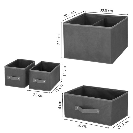 ORGANIZERY ZESTAW 4 SZT WKŁADÓW SZARE POJEMNIKI