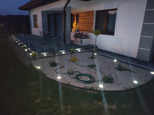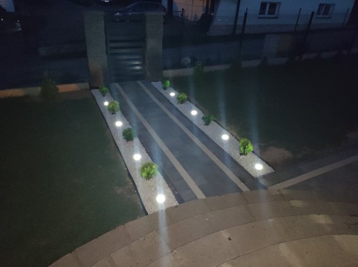 Lampa jest wyposażona w czujnik zmierzchu, prosta obsługa - włączenie baterii solarnej poprzez wciśnięcie przycisku u spodu reflektora, poprawia wygląd ogrodu bądź dowolnego elementu architektury.