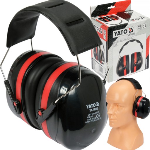 Nauszniki przeciwhałasowe 34dB YATO z szerokim pałąkiem i z technologią podwójnego tłumienia.