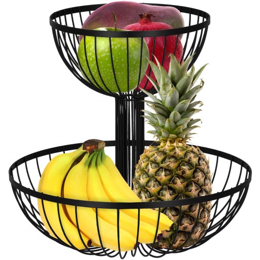 Metalowy podwójny koszyk na owoce marki Springos® w matowym wykończeniu wygląda pięknie. W jego wnętrzu zmieszczą się owoce, a dzięki otwartym ściankom miski zapewniona została cyrkulacja powietrza, aby nie ulegały one szybkiemu zepsuciu.