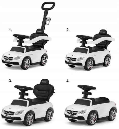 Jeździk Mercedes AMG C63 od Toyz to pojazd, który rośnie razem z dzieckiem. Może pełnić funkcje jeździka, chodzika i pchacza. Dzięki licencji marki Mercedes została wiernie odwzorowana unikalna stylistyka modelu C63 i jego jakość wykonania. Jeździk w sam raz nadaje się na wspólne spacery. Dziecko może poruszać się samodzielnie, a gdy będzie zmęczone rodzic z łatwością przejmie kontrolę nad pojazdem. Wysuwane podesty umożliwiają bezpieczne oparcie nóżek, a przed wypadnięciem chroni poręcz. Dodatkową atrakcją jest kierownica z melodiami i klaksonem. Rodzice docenią znajdujący się pod siedziskiem schowek na zabawki oraz uchwyt na napój umiejscowiony na rączce do prowadzenia.
