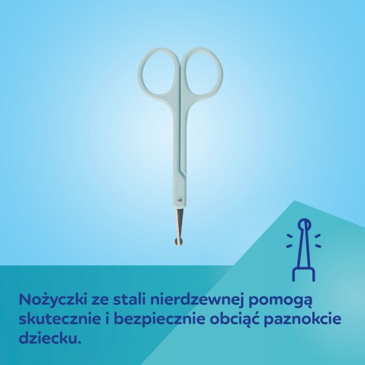 Zaokrąglone końcówki nożyczek zapobiegają skaleczeniu. Delikatny pilniczek pomoże usunąć nierówności paznokcia chroniąc dziecko przed zadrapaniem.