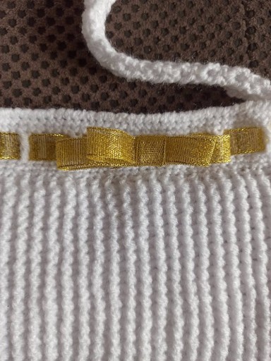 Zrobiona z akrylowej śnieżnobiałej włóczki.