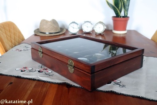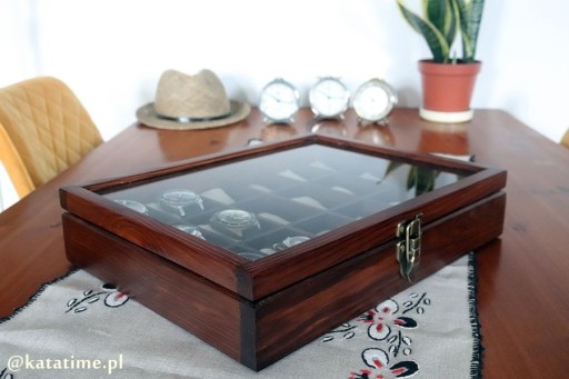 SKRZYNECZKA KASETKA PUDEŁKO NA 18 ZEGARKÓW DREWNO ROBIONA RĘCZNIE W POLSCE