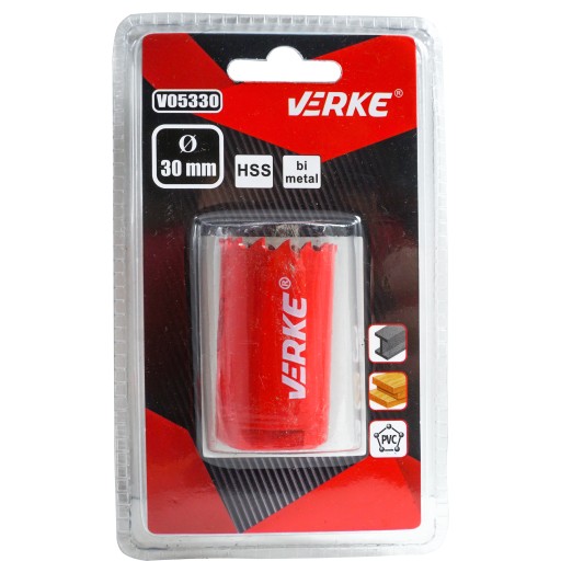 Otwornica bimetalowa VERKE doskonała do wiercenia w metalach, blachach, kształtownikach, tworzywach sztucznych, płytach meblowych, płytach kartonowo-gipsowych, wiórowych itp. Dzięki progresywnemu uzębieniu i wykonanemu ze stali szybkotnącej HSS, pozwala na wydajne wiercenie precyzyjnych otworów. Polecany do użytku zawodowego w przemyśle, serwisach oraz warsztatach, jak i w gospodarstwie domowym.