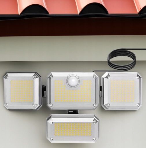 Mocny strumień światła bez problemu poradzi sobie z oświetleniem podwórka, chodnika czy ogrodu. Urządzenie zostało wyposażone w aż cztery reflektory, które można ustawić w dowolnej pozycji tak, by dokładnie doświetlić wszystkie zakamarki na Twojej posesji.
