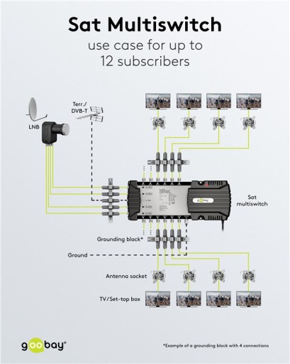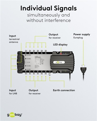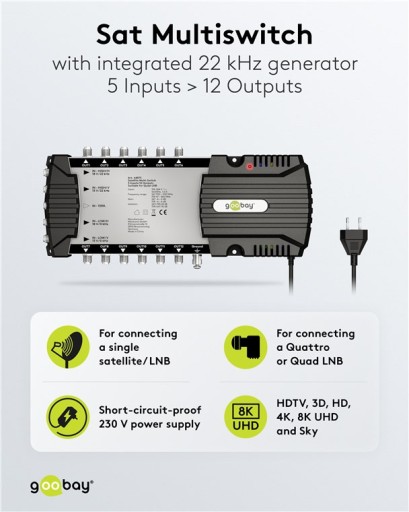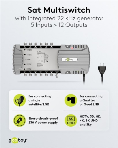 Multiswitch jest wygodnym rozwiązaniem umożliwiającym podłączenie kilku urządzeń do odbioru telewizji i radia w tym samym domu do jednej anteny satelitarnej. Przełącznik zapewnia, że każdy z 12 uczestników może cieszyć się indywidualnym programem - dla maksymalnej elastyczności odbioru telewizji.
