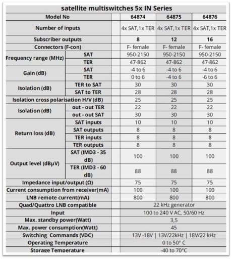 - Posiada zintegrowany generator 22 kHz i nadaje się zarówno do konwerterów Quattro, jak i konwerterów Quad