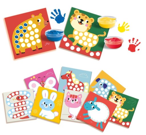 Ten zestaw zawiera trzy kolory farb do malowania palcami oraz dziesięć arkuszy do kolorowania ze zwierzątkami. Które zwierzę chcesz pokolorować? Wybierzesz uroczego króliczka czy dużego misia? Możesz ozdobić białe obszary na arkuszach do kolorowania w dowolny sposób.