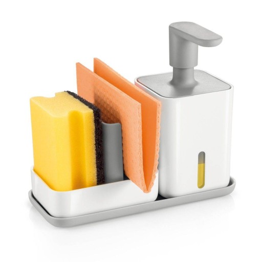 Łatwe napełnianie oraz dawkowanie płynu do mycia naczyń, wyjmowana wkładka w pojemniku przyśpiesza schnięcie i ułatwia czyszczenie.