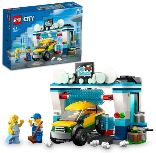 - Zestaw z myjnią samochodową — pobudź dziecięcą kreatywność tym zestawem LEGO® City Myjnia samochodowa (60362), który zawiera zabawne elementy ułatwiające pomysłowe odgrywanie ról