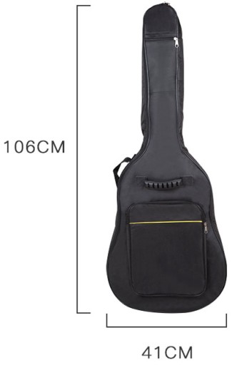 106cm. x 41cm. Pokrowiec praktycznie pasuje do każdej gitary ale czasami występują instrumenty o nietypowych kształtach pudła rezonansowego. Przed zakupem sugerujemy obmiar kontrolny.