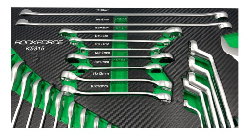 - Klucze oczkowe gięte 5szt.: 8x10,12x13,14x15,16x18,17x19mm