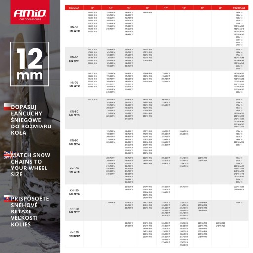 Цепи противоскольжения на колеса 12мм КН-130 АМИО-02107