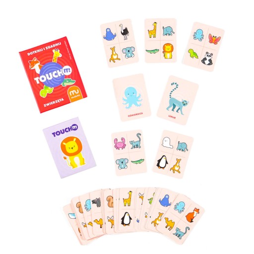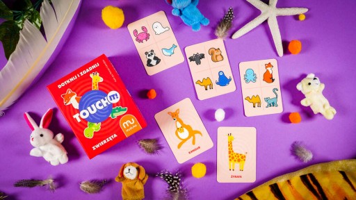 Szukasz prostej gry, która przypadnie do gustu każdemu bez względu na wiek? W „Touch it! Zwierzęta możesz zagrać nawet z pięciolatkiem, ale i dorośli nie będą narzekać na nudę. W tej wyjątkowej grze obrazek znajdujący się na rewersie karty pokryty jest specjalnym, wypukłym lakierem. Na awersie znajduje się ta sama ilustracja, ale w towarzystwie trzech innych. Zadaniem graczy jest odgadnięcie, który z czterech obrazków z przodu karty, jest pokazany na odwrocie – posługiwać można się tu jednak wyłącznie dotykiem!