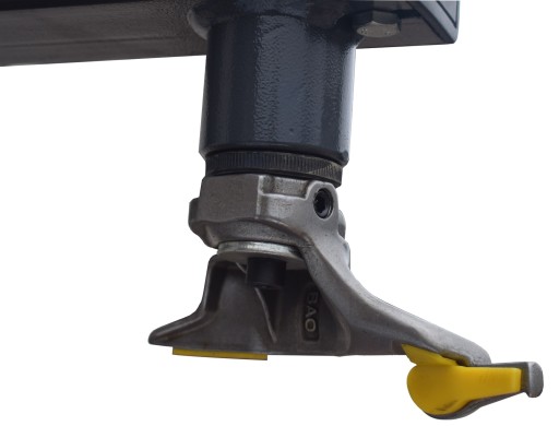 Stół montażownicy jest wyposażony w dwa siłowniki. Siłowniki poruszające zaciskami umożliwiają dokładne wyśrodkowanie i mocowanie trzymania koła. Układ pedałów daje wygodę dla personelu obsługującego. Odległość zbijaka jest wystarczająca dla dużych i nietypowych opon. Urządzenie do pompowania z manometrem jest umieszczone na kolumnie co pozwala kontrolować ciśnienie pompowanego koła. Pompujemy za pomocą dodatkowego nożnego pedała. Dzięki temu rozwiązaniu mamy obie ręce wolne. Uniwersalny przełącznik 40A ma powierzchnię styku napyloną czystym srebrem - gwarantuje to długą, bezawaryjną pracę i możliwość przenoszenia większych obciążeń Maszyna posiada już zamontowany naolejacz i regulator ciśnienia z odwadniaczem. Stół montażownicay jest wykonany ze specjalnego stopu stali, który jest wyjątkowo twardy odporny na pęknięcia i ścieranie