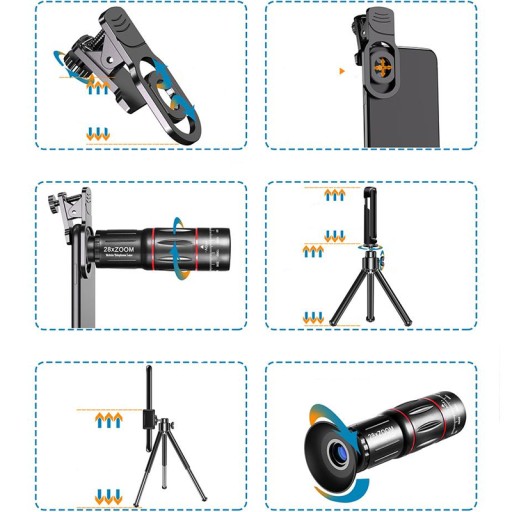 Obiektyw teleskopowy Super Zoom x28 ze statywem do telefonu