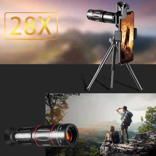 Jeśli jesteś pasjonatem fotografii mobilnej i szukasz coraz to lepszych rozwiązań i sposobów na lepsze, ciekawsze zdjęcia to zaopatrz się w obiektyw z zoomem 28-krotnym. Dzięki klipsowi z przesuwanym mocowaniem soczewki dopasujesz go do niemal każdego telefonu, a dołączony statyw pozwoli na stabilne ujęcia.