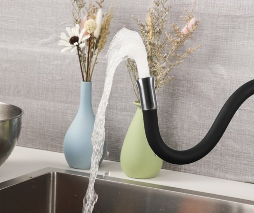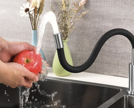 Bateria posiada elastyczny wąż, dzięki któremu dostosujemy baterię do wybranej wysokości. Giętka bateria nadaje się do zlewów jednokomorowych jak i dwukomorowych. Obrócisz ją o 360 stopni. Podniesiesz do góry oraz obniżysz według własnych potrzeb. Mycie produktów spożywczych jest szczególnie istotne w przypadku np. kapusty, która posiada mnóstwo zabrudzeń i piasku, a zwykłe opłukanie nie jest wystarczające. Usprawnia to również proces czyszczenia zlewozmywaka.