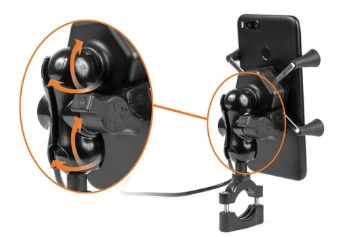 ДЕРЖАТЕЛЬ ДЛЯ ТЕЛЕФОНА НА МОТОЦИКЛ - XL - С ЗАРЯДКОЙ USB - ЧЕТЫРЕ СПИЦЫ