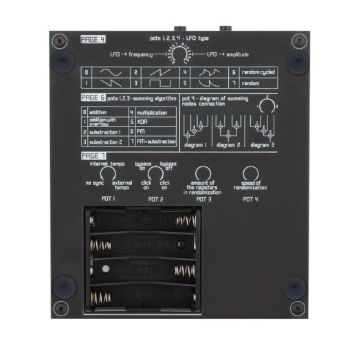Na generowanie brzmień składają się cztery przestrajane oscylatory o 16 przebiegach każdy, które posiadają własne LFO i obwiednie. Do tego dochodzi osiem algorytmów sumujących, które radzą sobie m.in. z FM, modulacją pierścieniową, mnożeniem i XOR, a w sumie obejmują 1536 wariantów. Brzmienie dopełnia celowo tandetny 8-bitowy filtr Lowpass. Dla większej różnorodności brzmienia zaimplementowany jest randomizer.