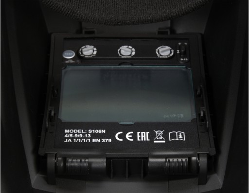 Przyłbica posiada płynną regulację stopnia zaciemnienia, czułości na intensywność źródła światła, a także czasu utrzymania stanu ciemnego po zakończeniu spawania. Przycisk na filtrze wyłącza funkcję ściemniania, wówczas można wykorzystać hełm jako środek ochrony indywidualnej np. przed iskrami z cięcia lub szlifowania metalu. Czeteropunktowa więźba, napotnik, system regulacji rozmiaru oraz kątów pracy gwarantują wysoki komfort oraz dostosowanie pozycji hełmu do indywidualnych wymagań.